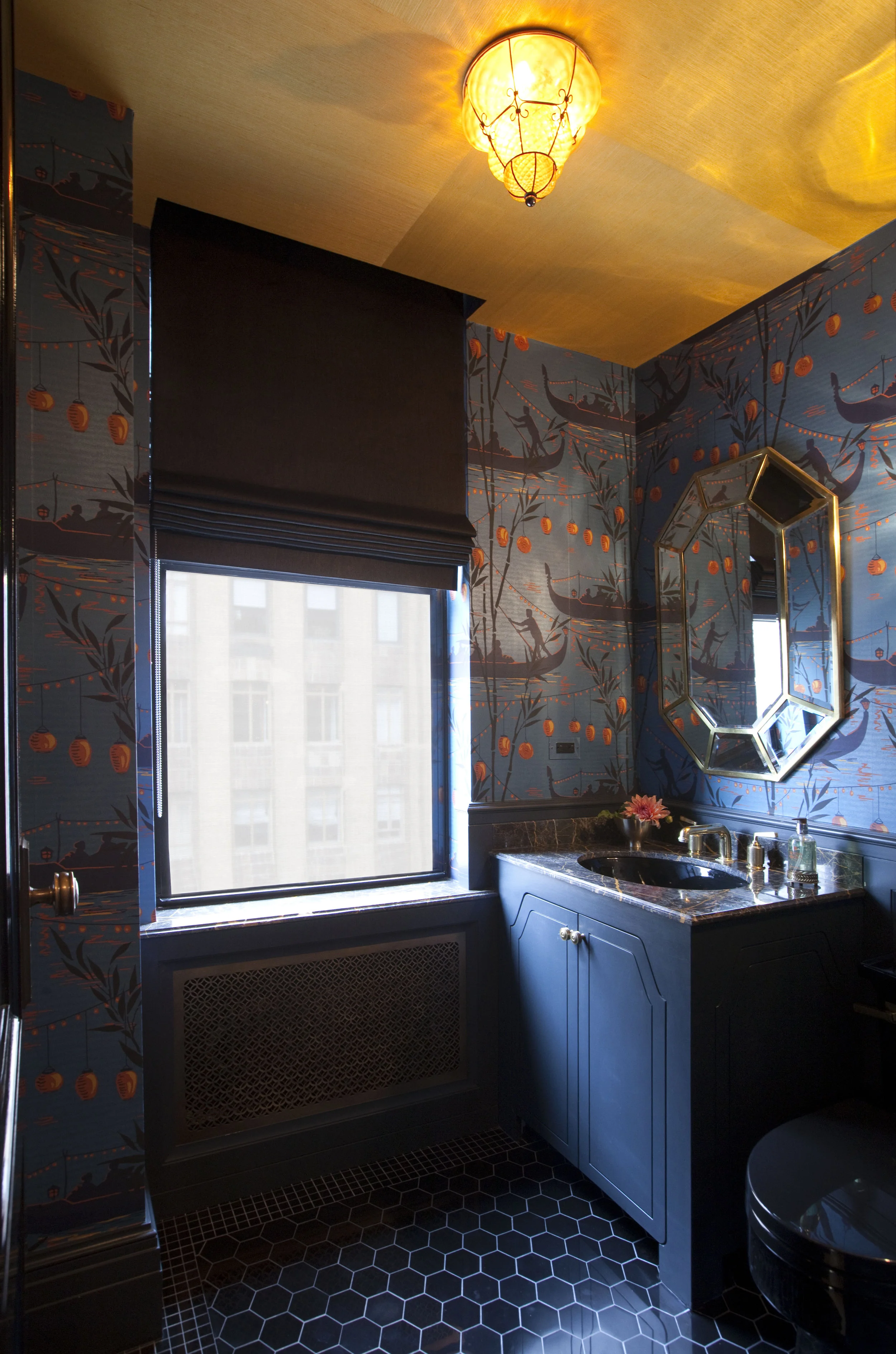 Guest Bath with inlaid tile mosaic from Cheryl Hazan Studio
